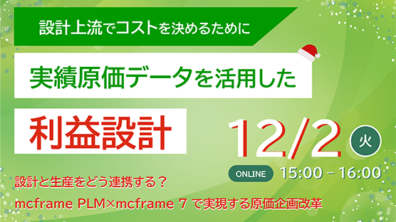 本セミナーでは、製造業向け基幹業務ソリューションであるmcframeシリーズの中でも、製品開発プロセスを支援する「mcframe PLM」と、実績原価管理や生産管理を担う中核システムである「mcframe 7」を活用し、設計データと実績原価データを連携させて“利益を見通した製品設計=利益設計”をどのように実現するかをご紹介します。